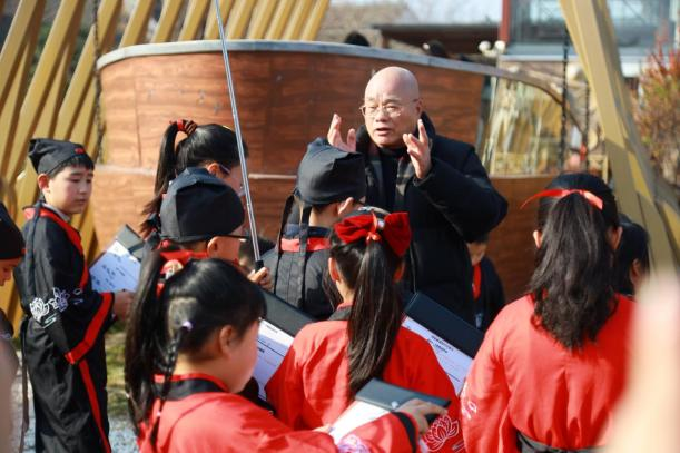 儀式結束后,中國作家協會會員、海鹽縣作家協會主席吳松良作為特邀嘉賓,為“秦溪文化探索隊”授旗,并擔任研讀環節向導,全體齊誦口號:“讀萬卷書,明禮啟智;行萬里路,探脈家鄉!”隨后,孩子們手持“探秘秦溪知行記錄卡”,從室內走向鄉土,開啟了實地探索之旅。